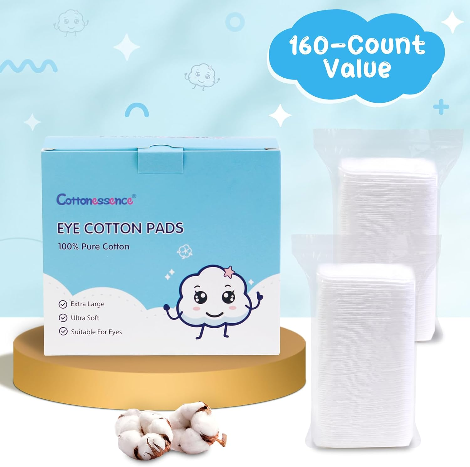 Ko'z atrofidagi paxta disk (160 dona) - 100% sof paxta, yuntlanmaydigan, yumshoq chetli dizayn, qo'shimcha katta, ko'z atrofi uchun mos, toner solish, meykupni olib tashlash, nuqtaviy tozalash, manikyur likopini olib tashlash uchun